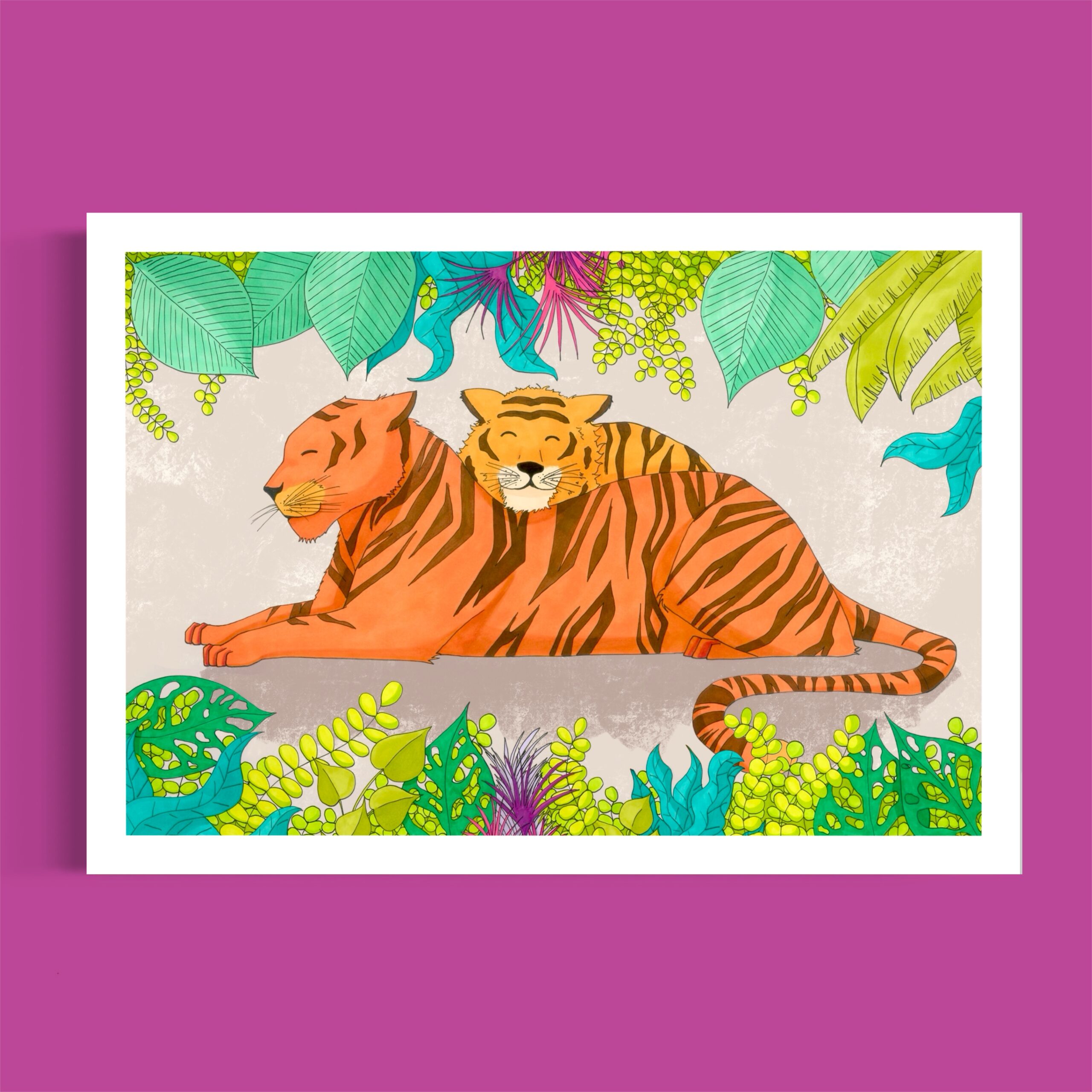 Poster « Tigers », dessin mignon de tigres qui se font un câlin.